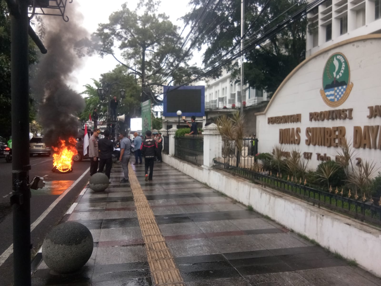 BANDUNG, INSPIRA – Puluhan aktivis dari Aliansi Aktivis Jabar, bersama Aktivis Anak Bangsa dan LBHK Wartawan Jawa Barat menggelar aksi bakar ban di depan Kantor Dinas Pelayanan Sumber Daya Air (PSDA) Provinsi Jawa Barat, Jalan Braga no. 137 Bandung. Dalam aksinya, para aktivis menyampaikan pernyataan sikap terkait dugaan tindak pidana Korupsi, Kolusi dan Nepotisme (KKN) di tubuh Dinas Pelayanan Sumber Daya Air (PSDA) Provinsi Jawa Barat tahun anggaran 2022-2023.