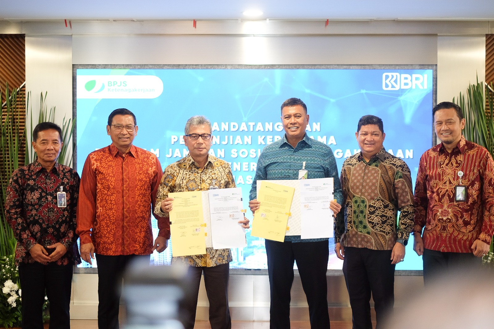 Kerja sama ditandatangani oleh Direktur Utama BPJS Ketenagakerjaan Anggoro Eko Cahyo dan Direktur Utama BRI Sunarso di Gedung BRILiaN Jakarta, Rabu