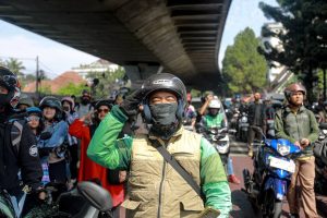 Sebagian besar pengguna jalan yang melintas berasal dari pengemudi ojol yang masih harus bekerja di tengah anjuran untuk tetap di rumah. Dengan mengenakan masker, hampir seluruh peserta ‘Tiga Menit Untuk Indonesia’ mendengarkan dan mengumandangkan Indonesia Raya dengan khidmat.