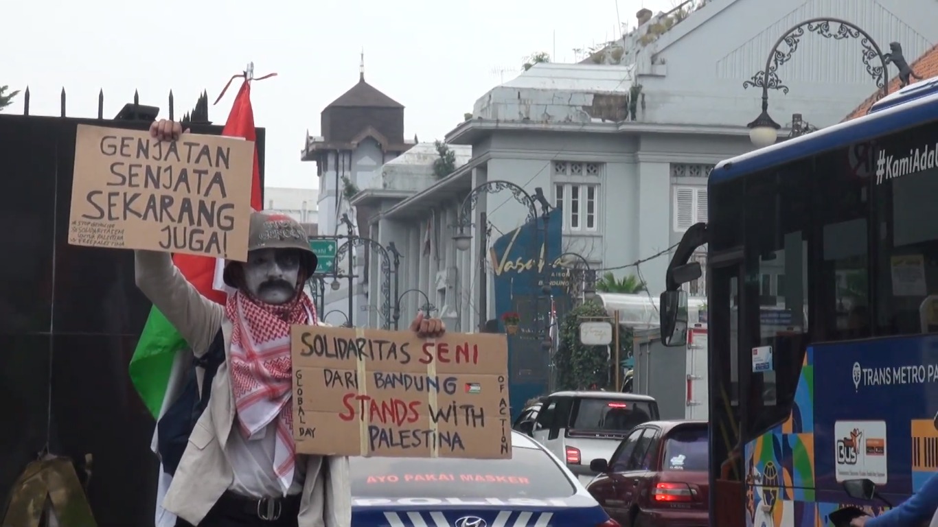 “Di Bandung dengan lahirnya gerakan solidaritas seni untuk Palestina berdiri dan bersikap bersama gerakan solidaritas warga dunia lainnya untuk melawan kekerasan kolonialisme, imperialisme yang terjadi di Palestina,” ujar Anfa Azahra dalam pernyataan sikapnya.