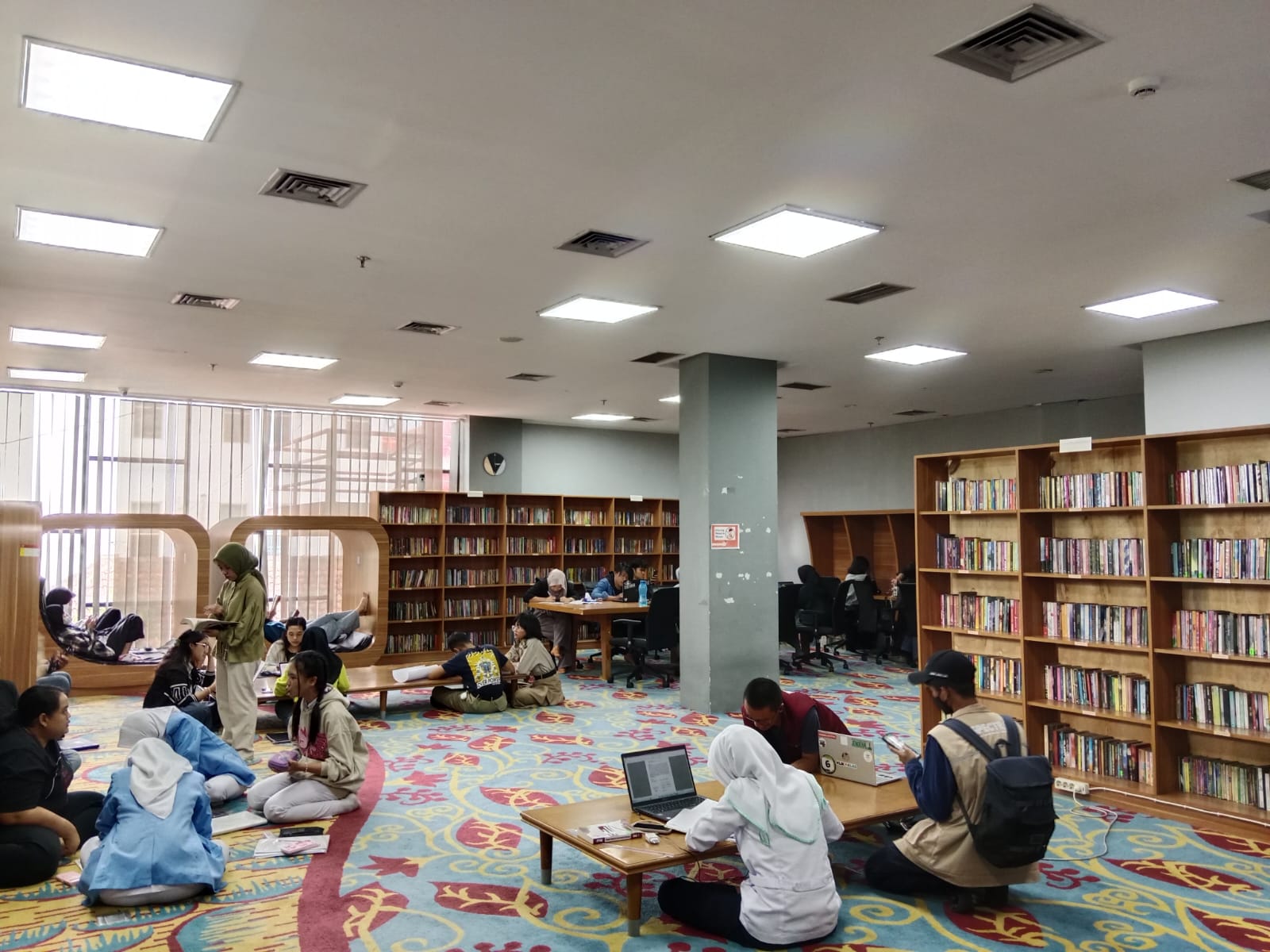 “Tempatnya nyaman banget bikin betah, fasilitas dan buku sangat lengkap dan bisa bikin fokus nugas karena walaupun banyak yang datang tapi tetap sunyi,” ucap Rio (Anis)**