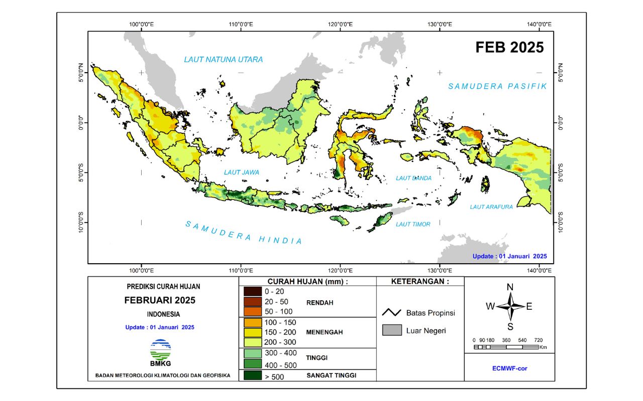BANDUNG INSPIRA – Prakiraan cuaca hari ini dikeluarkan oleh Badan Meteorologi, Klimatologi dan Geofisika (BMKG) dalam kanal youtube nya. BMKG menyampaikan prakiraan cuaca untuk hari ini Rabu (15/01/2025) akan dilanda hujan ringan di 20 daerah seluruh Indonesia.