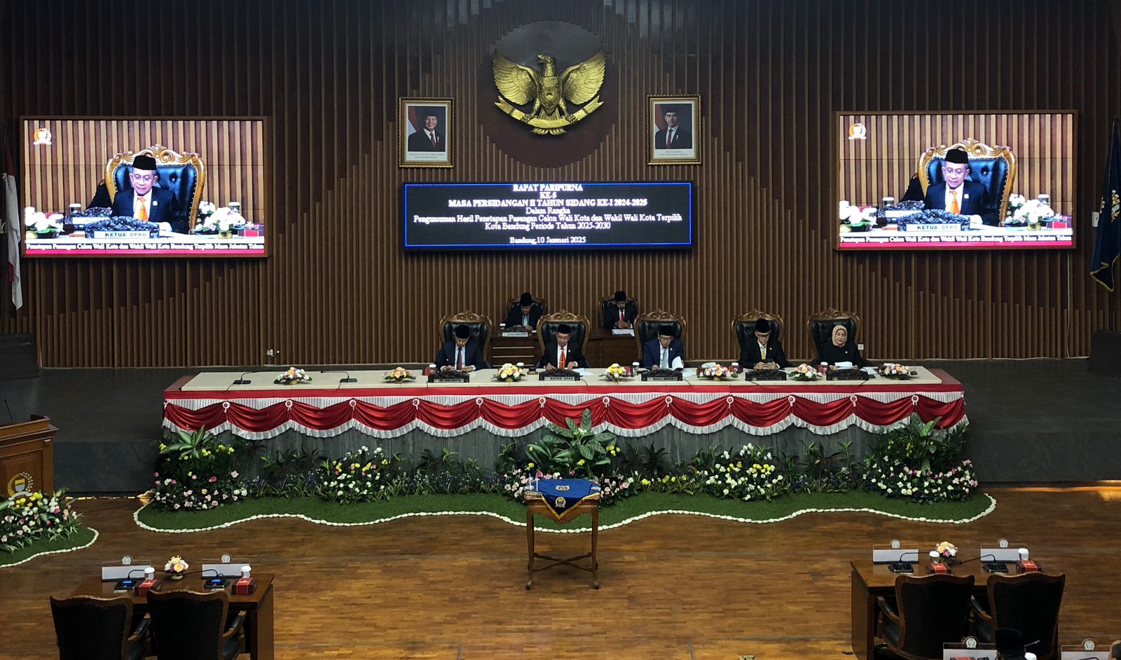 BANDUNG INSPIRA – Dewan Perwakilan Rakyat Daerah (DPRD) Kota Bandung gelar Rapat Paripurna Ke 5 mengenai penetapan Pasangan Walikota dan Wakil Walikota terpilih Pemilihan Kepala Daerah (Pilkada) serentak tahun kemarin, Pada Jumat (10/01/2025)